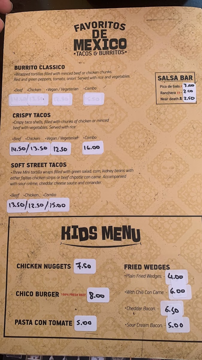 The dinner menu at Los Chicos offers a tempting variety of flavorful dishes, each catering to diverse tastes. For those in the mood for a sizzling treat, the Fajitas Mixtas are a great choice, combining seasoned meat with vibrant vegetables. The Western Burger is another crowd-pleaser, featuring a hearty beef patty topped with smoky bacon and melted cheese. For a truly indulgent experience, the Los Chicos XXL Burger stands out with its generous portion, perfect for those with a big appetite. If you're craving something crispy, the Tijuana Special Schnitzel delivers a satisfying crunch paired with tender meat. Alternatively, the Enchiladas Combo is a flavorful combination of enchiladas, offering a taste of Mexican cuisine. While prices are not listed, each dish promises a hearty meal, making Los Chicos an excellent option for anyone seeking a flavorful and satisfying dinner experience.